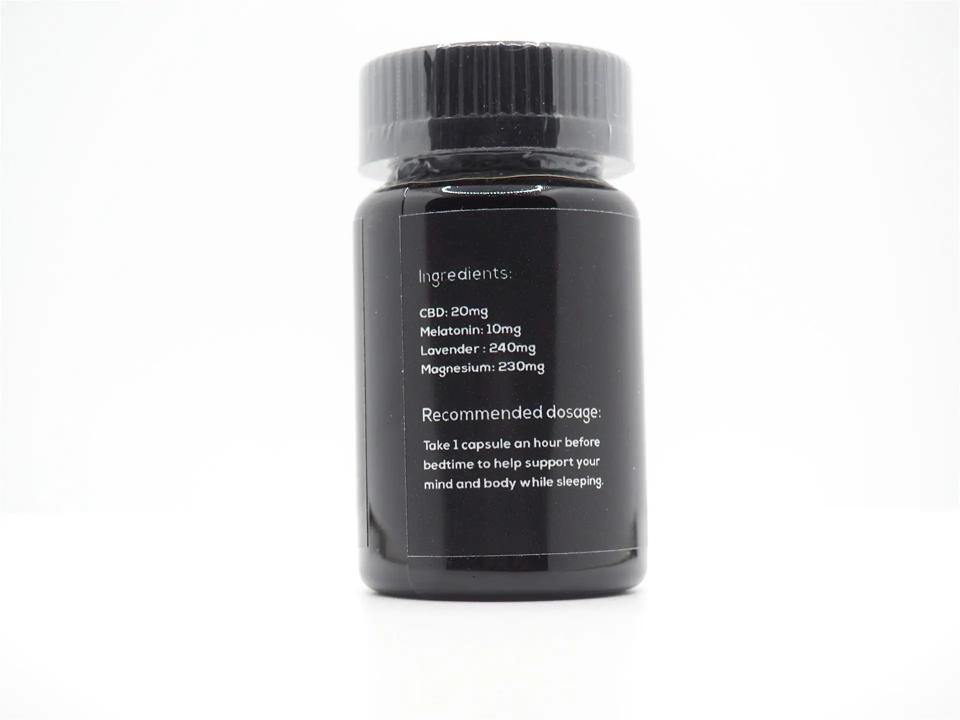 Each bottle contains 30 capsules. Each capsule is 500mg (CBD 20mg, Melatonin 10mg, Lavender 240mg, Magensium 230mg).