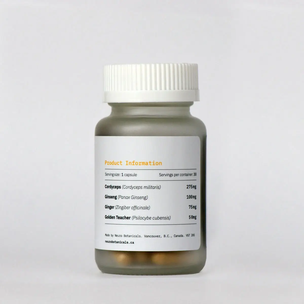 Each capsule contains 50mg of Golden Teacher magic mushrooms. The perfect amount for those new to psilocybin micro-dosing and wanting to take a mellow approach. Enjoy an energy boost and increased physical performance with this natural formula from Neuro Botanicals. There’s 30 capsules in each container.