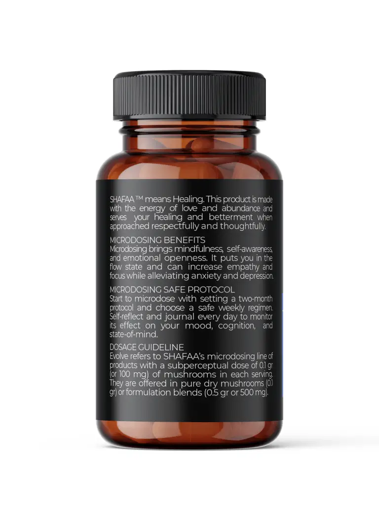Shafaa means healing. Evolve your brain, power up your memory, boost your cognition back-end with Shafaa Evolve Magic Mushroom Microdosing Prime Capsules!
