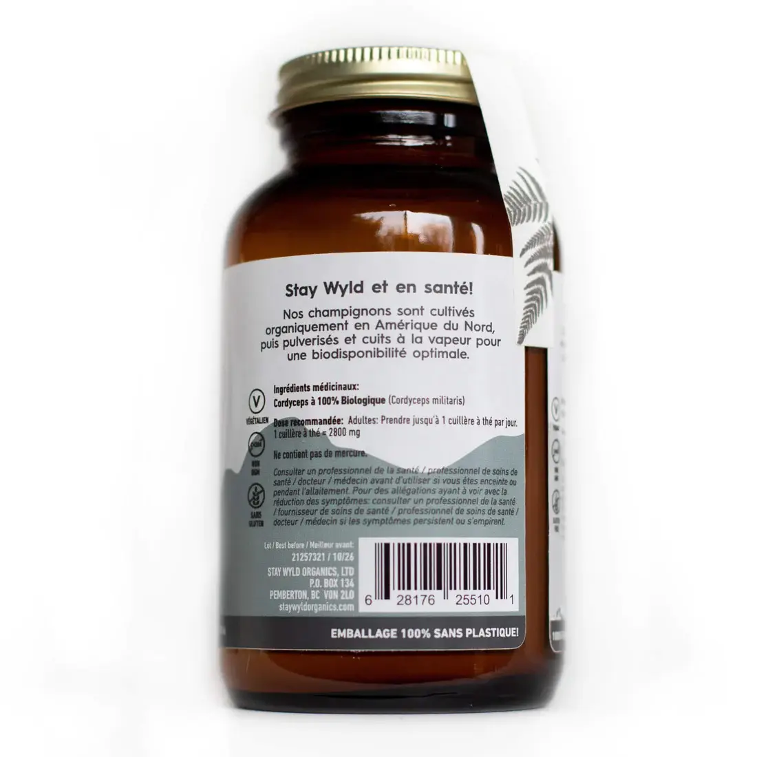 - Medicinal ingredients: Organic Cordyceps (Cordyceps militaris – whole mushroom powder) 500 mg
